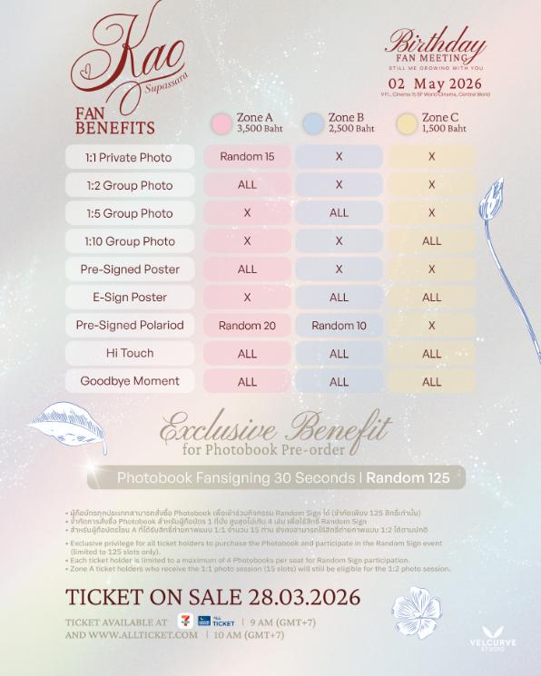 สำหรับใครที่ไม่อยากพลาดโอกาสร่วมสร้างความทรงจำสุดพิเศษในวันเกิดปีนี้ของ “เก้า สุภัสสรา” อย่าลืมตั้งนาฬิกาปลุกเตรียมกดบัตรกันให้ทัน เริ่มจำหน่ายบัตรใน วันเสาร์ที่ 28 มีนาคม 2569 ช่องทางการจัดจำหน่าย เคาน์เตอร์เซอร์วิสในร้าน 7-Eleven ทุกสาขา (เริ่ม 09:00 น.) และ ทางเว็บไซต์ www.allticket.com (เริ่ม 10:00 น.) ราคาบัตร: 3,500 บาท / 2,500 บาท / 1,500 บาท