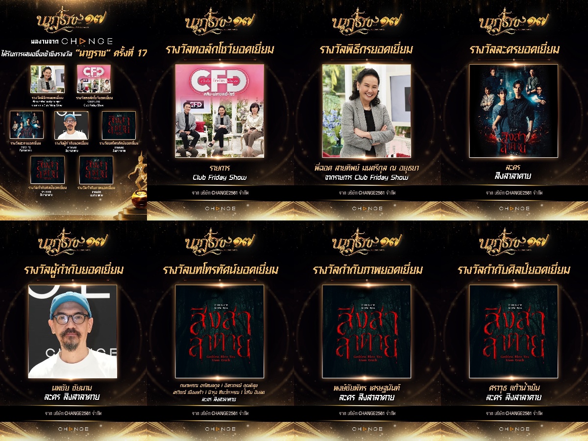 โดยทาง CHANGE2561 ขอขอบคุณสมาพันธ์สมาคมวิชาชีพวิทยุกระจายเสียงและวิทยุโทรทัศน์ ที่ให้เกียรติได้เข้าร่วมชิงรางวัลและขอแสดงความยินดีกับทุกผลงานที่ได้ร่วมเข้าชิงมา ณ ที่นี้ มาร่วมลุ้นและเชียร์ผลงานจาก CHANGE2561 ใน “นาฏราช” ครั้งที่ 17″ ประจำปี 2568 ในวันอาทิตย์ที่ 17 พฤษภาคม 2569 ณ สเฟียร์ฮอลล์ ชั้น 5 ศูนย์การค้าเอ็มสเฟียร์ และจะถ่ายทอดสดการประกาศผลทางสถานีโทรทัศน์ช่องวัน 31 (One 31) และสื่อออนไลน์ เพจนาฏราช และ oneD ตั้งแต่เวลา 18.30 น. เป็นต้นไป