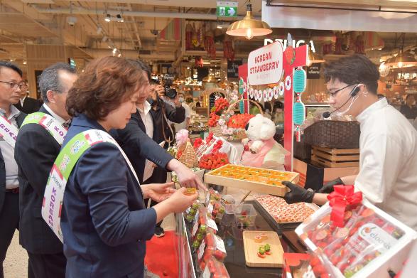 เมืองจินจู ตั้งอยู่ในจังหวัดคยองซังนัมโด ประเทศเกาหลีใต้ ซึ่งเป็นเมืองหลักของการปลูกสตรอว์เบอร์รีเพื่อการส่งออกที่สำคัญ และได้รับการขนานนามว่าเป็นศูนย์กลางการส่งออกสตรอว์เบอร์รี รวมถึงเป็นแหล่งกำเนิดของ K-Strawberry โดยสตรอว์เบอร์รีสดที่ส่งออกจากเกาหลีใต้ประมาณ 70–80% ปลูกที่เมืองจินจู โดยเมืองจินจูได้สร้างการตลาดที่มั่นคงในฐานะแหล่งส่งออกชั้นนำผ่านการส่งเสริม และพัฒนาสตรอว์เบอร์รี่สายพันธุ์หลักอย่าง ‘กึมซิล (Geumsil)’ และ ‘ซอลฮยัง (Seolhyang)’ อย่างมีกลยุทธ์ นอกจากนี้เมืองจินจูยังเข้าร่วมกิจกรรมต่างๆ อาทิ การสร้างแบรนด์ งานแสดงสินค้า ตลอดจนการจัดงานจำหน่าย และประชาสัมพันธ์พิเศษเพื่อส่งเสริมการขายอย่างต่อเนื่อง เพื่อผลักดันสตรอว์เบอร์รีเกาหลีสู่ตลาดโลก