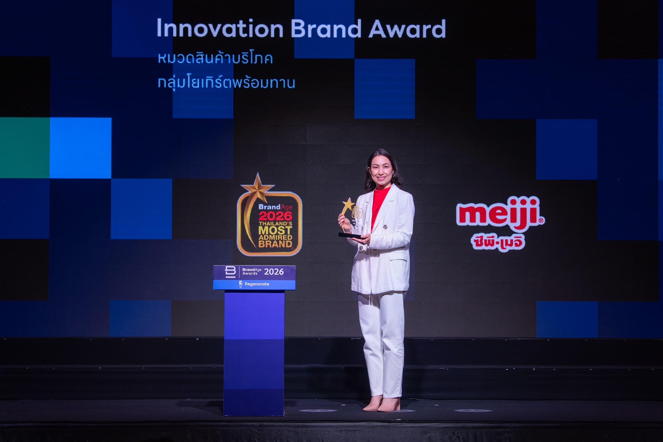บริษัท ซีพี-เมจิ จำกัด ผู้ผลิตผลิตภัณฑ์นมและโยเกิร์ตชั้นนำของประเทศไทย คว้ารางวัลแบรนด์ยอดเยี่ยม 2026 Thailand’s Most Admired Brand ในหมวดโยเกิร์ตพร้อมทาน ต่อเนื่องเป็นปีที่ 3 และรางวัลพิเศษ Innovation Brand Award เป็นปีที่ 3 เช่นกัน จากโครงการสำรวจความน่าเชื่อถือด้านแบรนด์ของประเทศไทย จัดโดยนิตยสาร BrandAge ซึ่งสะท้อนถึงความแข็งแกร่งของแบรนด์ รวมถึงความเชื่อมั่นและความไว้วางใจจากผู้บริโภคที่มีต่อแบรนด์อย่างต่อเนื่อง
