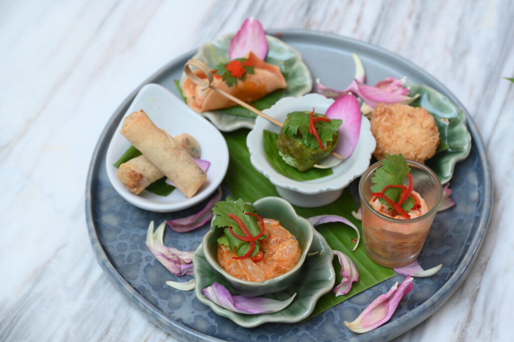 ไฮไลต์ของค่ำคืนคือการนำเสนอเมนูที่ถ่ายทอดเรื่องราวของอาหารไทยผ่านมุมมองร่วมสมัย อาทิ ข้าวขยำปลาช่อนแม่ลา วัตถุดิบขึ้นชื่อจากจังหวัดสิงห์บุรีที่ถูกตีความใหม่อย่างร่วมสมัย ซุปเลียงทอง แรงบันดาลใจจากแกงเลียงไทยที่นำเสนอในรูปแบบซุปสีทองรสนุ่มละมุน เป็ดเมารัก หรือเป็ดบอมเบย์ที่ผ่านการเผาไฟจนได้กลิ่นหอมเป็นเอกลักษณ์ ลูกชุบเชอร์รี่ตับเป็ด การผสานเสน่ห์ของขนมไทยเข้ากับวัตถุดิบชั้นเลิศ และ ขนมโสมนัส คุกกี้ไทยโบราณเนื้อกรอบเบาที่ละลายในปาก โดยเมนูทั้งหมดถูกจับคู่อย่างพิถีพิถันกับเครื่องดื่มที่คัดสรรมาเป็นพิเศษ ทั้งไวน์ขาว ไวน์แดง สปาร์กกลิ้งไวน์ สวีทไวน์ รวมถึง สาโทจากเมืองแพร่ ซึ่งนำเสนอรสชาติของสุราพื้นบ้านไทยในมิติใหม่ร่วมกับสำรับอาหารไทยระดับพรีเมียม