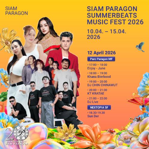 สยามพารากอน ตอกย้ำความเป็น Global Destination จุดหมายปลายทางอันดับ 1 ที่อยู่ในใจนักท่องเที่ยวทั้งชาวไทยและต่างชาติ ผนึกกำลัง ธนาคารกสิกรไทย จำกัด (มหาชน) สร้างปรากฏการณ์แห่งความสุขรับซัมเมอร์อย่างยิ่งใหญ่กับงาน“SIAM PARAGON SUMMERBEATS MUSIC FEST 2026” ปลุกเอ็นเนอร์จี้ให้มีชีวิตชีวาพร้อมสาดความสนุกแบบชุ่มฉ่ำ เนรมิตพื้นที่ด้วยงานคราฟต์สไตล์ไทยเข้ากับดีไซน์ล้ำสมัย ท่ามกลางบรรยากาศสีสันสดใส ที่จะกลายเป็นแลนด์มาร์กเช็คอินที่ทุกคนต้องแชร์! เตรียมสนุกไปกับ มิวสิคเฟสติวัลจากทัพศิลปินที่ทรงอิทธิพลที่สุดแห่งยุคกว่า 150 ชีวิต ที่จะมาสร้างประสบการณ์ทางดนตรีแบบจัดเต็ม ผสานแสง สี เสียง และโปรดักชั่นระดับเวิลด์คลาส เสริมทัพด้วยกิจกรรมความสนุกแบบครบทุกมิติ และมาพร้อมโปรโมชั่นพิเศษสุดคุ้ม ระหว่างวันที่ 10-15 เมษายน 2569 ณ พาร์ค พารากอน สยามพารากอน โดยงานนี้ได้รับการสนับสนุนจากพันธมิตร ภาครัฐ และเอกชนแบรนด์ วิชี่ เดอคอส ภายใต้ บริษัท ลอรีอัล (ประเทศไทย) จำกัด และ แบรนด์ สมูทอี ภายใต้บริษัท สยามเฮลท์กรุ๊ป ร่วมจัดงาน