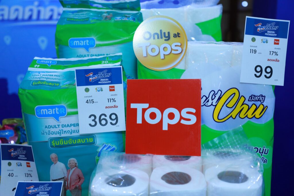 ท็อปส์ ในเครือเซ็นทรัล รีเทล ประกาศพร้อมเคียงข้างคนไทย เดินหน้าขานรับนโยบายภาครัฐ เข้าร่วม “ไทยช่วยไทย” ลดภาระ ลดค่าครองชีพ ภายใต้การดำเนินงานของกรมพัฒนาธุรกิจการค้า กระทรวงพาณิชย์ เพื่อร่วมลดภาระค่าครองชีพและบรรเทาค่าใช้จ่ายของประชาชน ท่ามกลางสถานการณ์ต้นทุนพลังงานที่ปรับตัวสูงขึ้น และส่งผลต่อราคาสินค้าในภาพรวม ผ่านการนำเสนอสินค้า Own Brand กว่า 656 รายการ พร้อมส่วนลดสูงสุด 50% และราคาพิเศษเริ่มต้นเพียง 10 บาท ครอบคลุมสินค้าจำเป็นในชีวิตประจำวันอย่างครบครันจากกว่า 11 แบรนด์ อาทิ TOPS, My Choice, Smarter, Love The Value, Chef Selection, Baggy, Sofu Skin, Snacker, Yindee, Kon Thai และ Juvie พร้อมตรึงราคาสินค้าจำเป็นกว่า 10 รายการ อาทิ ข้าวสาร ปลากระป๋อง น้ำปลา ถุงขยะ กระดาษทิชชู่ น้ำยาล้างจาน และผงซักฟอก ตั้งแต่วันนี้ถึง 31 พฤษภาคมนี้