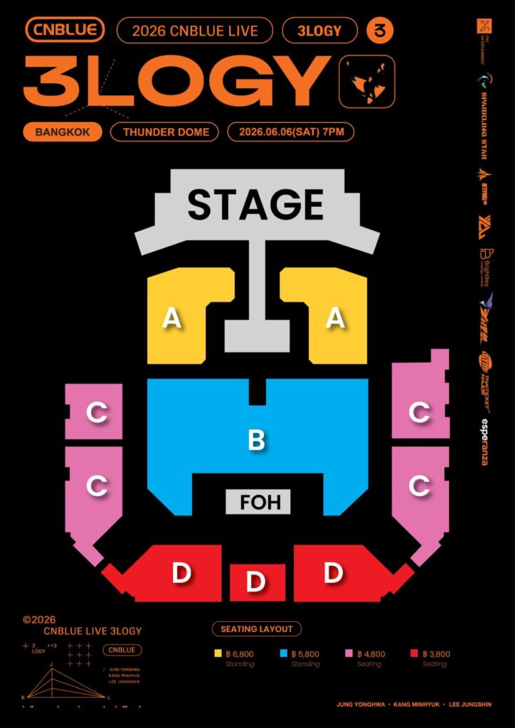 สำหรับใครที่ไม่อยากพลาดโมเมนต์ประวัติศาสตร์ในครั้งนี้ 2026 CNBLUE LIVE WORLD TOUR ‘3LOGY’ IN BANGKOK รับจับจองบัตรด่วน!! เปิดจำหน่ายบัตรแล้วผ่านทาง www.thaiticketmajor.com ราคาบัตร 6,800 / 5,800 / 4,800 / 3,800 บาท ใครที่ยังไม่มีบัตรในมือขอเตือนเลยว่าอย่าลังเล เพราะโอกาสที่จะได้ใกล้ชิดกับพวกเขาระดับนี้ไม่ได้มีบ่อยๆ อย่าปล่อยให้โอกาสหลุดมือไป แล้วมาพบกันที่หน้าเวที! ติดตามละเอียดเพิ่มเติมได้ทาง