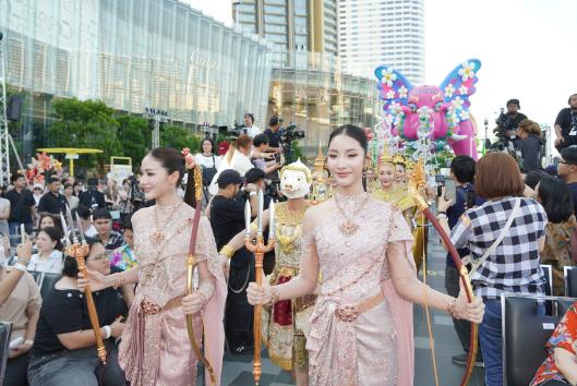 บรรยากาศภายในงานครึกครื้นตั้งแต่ช่วงแรกจนถึงช่วงสุดท้าย โดยในช่วงพิธีเปิดงานผู้เข้าร่วมงาน ได้พบกับ ขบวนแห่สงกรานต์อันวิจิตรตระการตา ถ่ายทอดเสน่ห์ของประเพณีไทยในมิติร่วมสมัย งดงาม อ่อนช้อย และเปี่ยมด้วยชีวิตชีวา พร้อมด้วยนางรากษสเทวี นางสงกรานต์ประจำวันอังคาร ผู้เปี่ยมด้วยพลังแห่งความเข้มแข็ง สง่างาม และเปี่ยมสิริมงคล โดยนางสงกรานต์ในวันนี้ นำโดย น้องเพ่ยเพ่ย และ น้องปิ่น 2 ศิลปินสมาชิกวง Alters และนักแสดงจากซีรีย์ Cupid Wall จากค่าย XEBIS ENTERTAINMENT สวมใส่ชุดไทยศิวาลัยผ้าไทยประดับดิ้นรูปแบบประยุกต์ ในโทนสีชมพู Rose Gold ถ่ายทอดความหวานละมุน และสไบห่มสะพักปักประดับมุก เลื่อม และคริสตัลสีชมพูไพลิน เพิ่มประกายระยิบระยับในทุกย่างก้าว ซึ่งความงดงามของขบวนแห่สงกรานต์ในวันนี้สร้างความประทับใจให้กับผู้เข้าร่วมงานเป็นอย่างยิ่ง