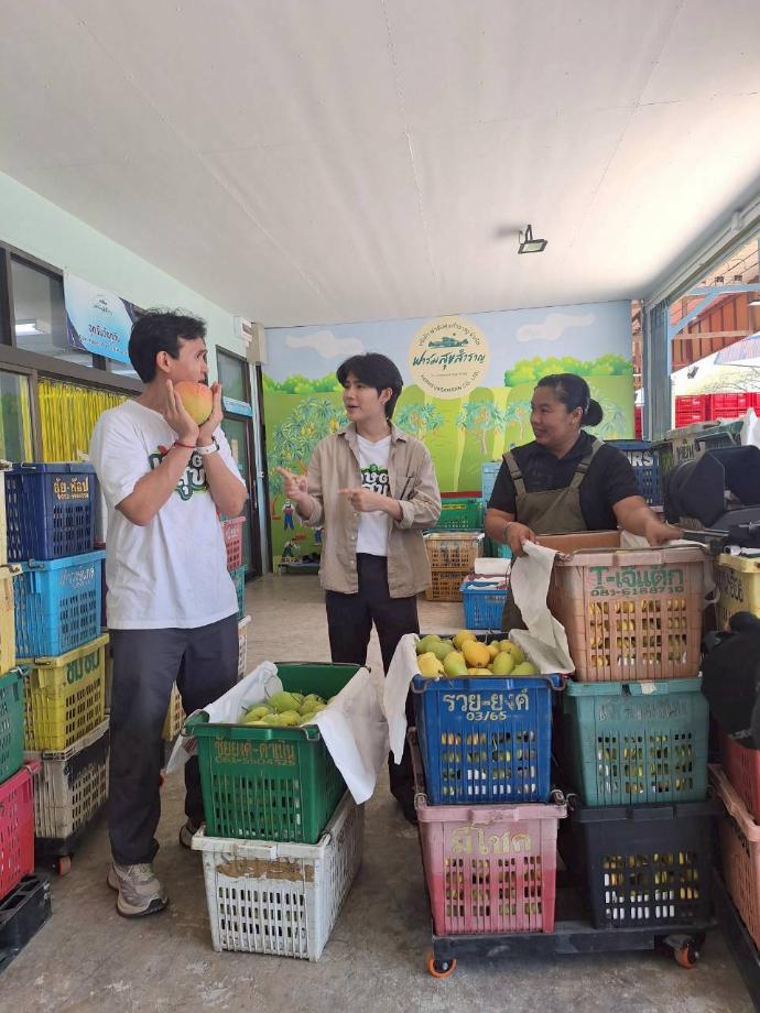 และความสุข ความสนุก ยังไม่หมดเพียงเท่านี้ เราไปต่อกันที่ ฟาร์มสุขสำราญ วิสาหกิจที่สร้างสุข จากแปลงเกษตร สู่ความยั่งยืนของชุมชน พาไปดูขั้นตอนการคัดเกรดมะม่วง งานนี้ “โต๋นแตร-จุกบี้” ได้ไปขอความรู้จาก “พี่หวิว-เทวารักษ์ นิ่มเจริญ” ประธานวิสาหกิจ ซึ่ง พี่หวิว คือ เกษตรกรที่นำพากลุ่มผู้ปลูกมะม่วงให้เดินหน้าอย่างแข็งแรง เติบโต และมีรายได้มั่นคง ส่งสินค้าขึ้นห้างแถมยังส่งมะม่วงไปออกสู่ตลาดโลกอีกด้วย ส่วนจะมีเคล็ดลับที่ทำให้ประสบความสำเร็จแบบนี้ได้อย่างไร พลาดไม่ได้