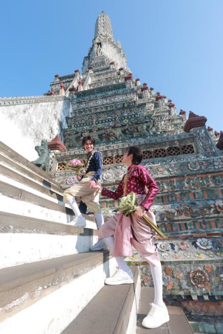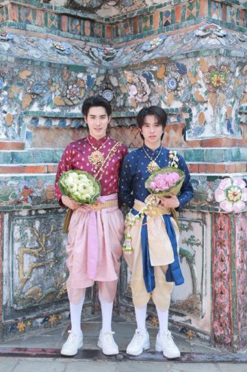 กลายเป็นภาพที่สะกดทุกสายตา กับความหล่อละมุนของสองหนุ่มฮอต “ปีเตอร์แพน-ทัศน์พล” และ “ฟลุ้ค-ณธัช” ที่ปรากฏตัวในชุดไทยสุดเนี้ยบ สง่างามราวกับหลุดออกมาจากวรรณคดี เพื่อร่วมสืบสานประเพณีขึ้นปีใหม่ไทย พากันไปสรงน้ำพระเสริมสิริมงคลเนื่องในวันสงกรานต์ ณ วัดอรุณราชวราราม งานนี้ทำเอาบรรยากาศคึกคักเป็นพิเศษ เพราะนอกจากจะได้อิ่มบุญแล้ว ยังได้อิ่มใจไปกับออร่าความละมุนของทั้งคู่ ซึ่งมาใน “ธีมชุดไทย” ที่กำลังกลายเป็นไวรัลที่มาแรงตีคู่มากับ “เทรนด์ดอกบัว เจน Z” ที่วัยรุ่นไทยกำลังฮิตถือช่อดอกบัวถ่ายรูปสุดชิคในขณะนี้