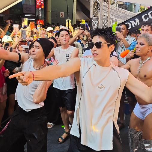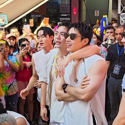 บรรยากาศภายในงานเต็มไปด้วยความสนุกและครื้นเครงแบบจัดเต็ม ทันทีที่ทีมนักแสดงปรากฏตัว เสียงกรี๊ดก็ดังสนั่นไปทั่วพื้นที่ ทั้งแฟนชาวไทยและต่างชาติร่วมต้อนรับอย่างอบอุ่น ก่อนจะชวนกันสาดความสุขแบบฉ่ำสุดขีด พร้อมเสิร์ฟเซอร์ไพรส์ด้วยโชว์เมดเลย์สุดมันส์ ทั้ง “Bad Romance”, “Hit Me Up”, “Bang Bang Bang” และ “เจ็บนิด..นิด” ที่ปลุกบรรยากาศให้ร้อนแรงยิ่งกว่าอุณหภูมิกลางสีลม สร้างโมเมนต์ประทับใจให้กับแฟน ๆ แบบไม่มีพัก ฉลองเทศกาลสงกรานต์อย่างยิ่งใหญ่และน่าจดจำ