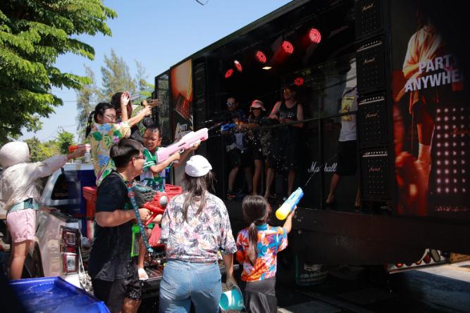 ตลอดวันที่ 12, 13 และ 16 เมษายนที่ผ่านมา บรรยากาศตามแลนด์มาร์คยอดฮิตอย่าง สยามสแควร์, เซ็นทรัลเวิลด์, สีลม, บรรทัดทอง, เยาวราช, ราชดำเนิน, อุดมสุข, แพรกษา ไปจนถึงชายหาด บางแสน ถูกเติมเต็มด้วยจังหวะดนตรี และ ความสนุก ยกระดับการเล่นน้ำสงกรานต์ให้กลายเป็นปาร์ตี้สุดมันส์ สร้างความแปลกใจและตื่นเต้นให้กับขบวนเล่นน้ำสงกรานต์ในทุกพื้นที่ที่รถ Party Truck บุกเข้ายึดหัวหาดความมัน
