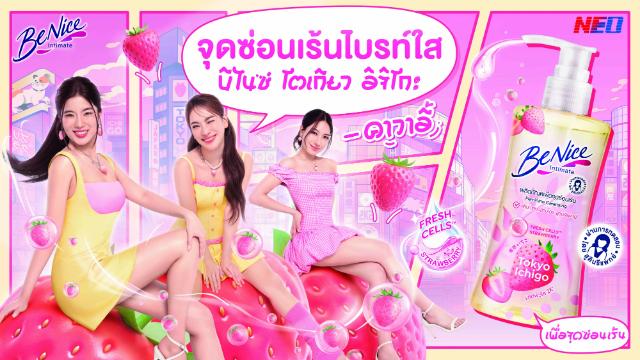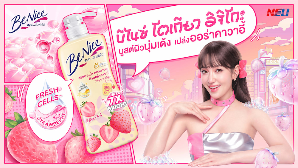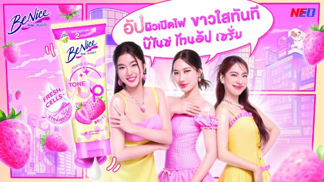 บีไนซ์ (BeNice) ผู้นำผลิตภัณฑ์ทำความสะอาดและบำรุงผิวกาย ภายใต้ บริษัท นีโอ คอร์ปอเรท จำกัด (มหาชน) ยกระดับประสบการณ์ปรนนิบัติผิวให้สนุกและสดใสกว่าที่เคย เปิดตัวซีรีส์ใหม่ล่าสุด “บีไนซ์ โตเกียว อิจิโกะ” (BeNice Tokyo Ichigo Series) ครั้งแรกของการรวมพลังสกินบูสเตอร์ จากเฟรชเซลล์สตรอเบอร์รี่และเบบี้คอลลาเจน มอบผลลัพธ์ผิวขาวอมชมพูแบบสาวญี่ปุ่น พร้อมกลิ่นหอมละมุนติดผิวนานตลอดวัน