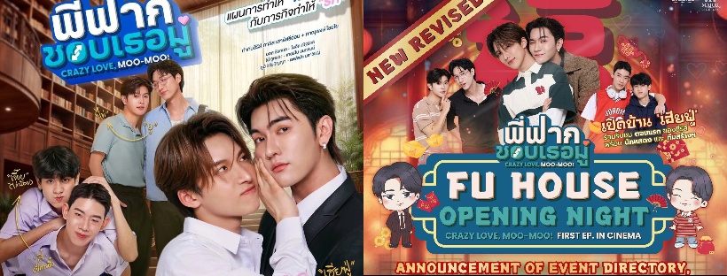 ได้เวลาเปิดรับความฟินผสมความป่วนของซีรีส์จักรวาลบ้านจีนกันแล้ว! เตรียมตัวไปพบกับเรื่องราวความสัมพันธ์สุดฟีลกู๊ดของ 3 พี่น้องแซ่ต่งและหวานใจของพวกเขาที่จะมาทำให้ซัมเมอร์นี้เต็มไปด้วยความสุขอิ่มเอมหัวใจ สำหรับซีรีส์วายรอมคอมแห่งปี “พี่ฟากชอบเธอมู่ Crazy Love, Moo-Moo!” ภายใต้การดำเนินงานของ บริษัท บลู แอนด์ โค. จำกัด โดยผู้จัดฯ คุณยู-กมล รุททองจันทร์ ที่ได้แท็กทีมเหล่านักแสดง นำโดย บอส ชัยกมล, โนอึล ณัฐรัชต, เทอร์โบ ชนกชนม์, โน่ ภูหลวง, ภูมิ วชิรปัญญา, เอฟเฟค นราวิชญ์, เต้ สรรวยศ และ โดนัท ศุภวิชญ์ ขอเปิดประตูบ้าน “เฮียฟู่” ต้อนรับแฟนคลับที่จะมาร่วมดูซีรีส์ตอนแรกและสัมผัสโมเมนต์สุดพิเศษไปพร้อมกันในงาน “Fu House Opening Night” โดยจะจัดขึ้นในวันเสาร์ที่ 9 พฤษภาคม 2569 เวลา 17.30 น. เป็นต้นไป ณ โรงภาพยนตร์ที่ 13 เมเจอร์ ซีนีเพล็กซ์ รัชโยธิน