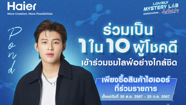 กรุงเทพฯ 10 กันยายน 2567 – ครึ่งปีแห่งความปัง! เรียกได้ว่างานฮอตงานรุมไม่พัก สูสีตีคู่กับหน้าตาจริง ๆ สำหรับหนุ่มหล่อ “ปอนด์ ณราวิชญ์ เลิศรัตน์โกสุมภ์” ที่เตรียมเล่นใหญ่เนรมิตห้องแล็ปทดลองแสนพิเศษ พร้อมมอบความสุขให้แฟน ๆ สนุกสุดฟินแบบเกินร้อย ในกิจกรรม Haier Dream For Fan SS4 ตอน “Haier x Pond Lovely Mystery Lab เปิดห้องทดลอง…เลิฟ(วิทย์)ยู” เตรียมสร้างหลักสูตรรักแบบเร่งรัดให้เหล่าแฟน ๆ ทั้งในจอและนอกจอหัวใจฟูกันถ้วนหน้า ผ่านกิจกรรมการทดลองแสนสนุกไปกับ Pondfessor มาดเท่ ทางไลฟ์บน Facebook : Haier Thailand ในวันที่ 4 ตุลาคม 2567 เวลา 18.00 น. พร้อมลุ้นเป็น 1 ใน 10 ผู้โชคดีเข้าร่วมห้องแล็ป เพื่อเข้าร่วมชมไลฟ์ในพื้นที่ Live Area สุดเอ็กซ์คลูซีฟอีกด้วย เพียงซื้อสินค้าไฮเออร์ที่ร่วมรายการ ตั้งแต่วันนี้ – 25 กันยายน 2567 สามารถติดตามรายละเอียดกติกาการร่วมสนุกของกิจกรรมเพิ่มเติม ได้ที่ Facebook Haier Thailand: สามารถติดตามข้อมูลข่าวสาร โปรโมชัน และกิจกรรมต่าง ๆ จากไฮเออร์ได้ที่ …