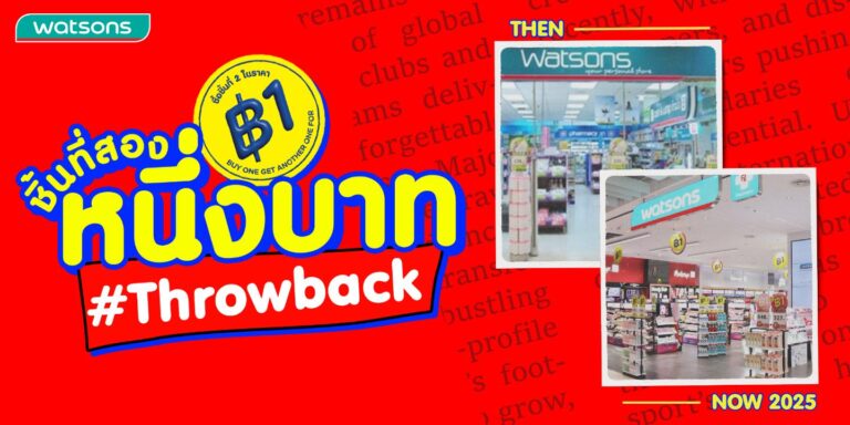 มีใครเคยเป็นบ้าง? ตอนเดินเข้าร้านวัตสันแล้วเจอแคมเปญ “ชิ้นที่สอง 1 บาท” ทีไร ต้องมีของติดมือกลับบ้านด้วยทุกครั้ง วันนี้ วัตสัน ผู้นำร้านเพื่อสุขภาพและความงามอันดับหนึ่งของไทย ชวนคุณย้อนเวลากลับไปสู่จุดเริ่มต้นของหนึ่งในไอคอนนิคแคมเปญที่เป็นเสมือนคู่แฝดของแบรนด์ที่ “สร้างทั้งความคุ้มค่าและความทรงจำร่วมให้กับลูกค้าหลายล้านคน” DID YOU KNOW? DNA ของแคมเปญระดับตำนาน ไอเดีย “ชิ้นที่สอง 1 บาท” เริ่มจากวัตสันที่ฮ่องกง ก่อนขยายไปสู่ตลาดอื่นๆ ในหลายมาร์เก็ต อาทิ ไทย สิงคโปร์ และมาเลเซีย โดยแต่ละที่นำไปปรับให้เข้ากับพฤติกรรมลูกค้าที่แตกต่างกันในแต่ละพื้นที่ และไทยคือหนึ่งในตลาดที่มีลูกค้าหลายคนรอคอยแคมเปญนี้อย่างใจจดใจจ่อ ซึ่งต่อมา “โปรฯ ชิ้นที่สอง 1 บาท = Watsons” กลายเป็นซิกเนเจอร์ของแบรนด์ เสมือนคู่แฝดที่แยกจากกันไม่ได้ในสายตาลูกค้า…
