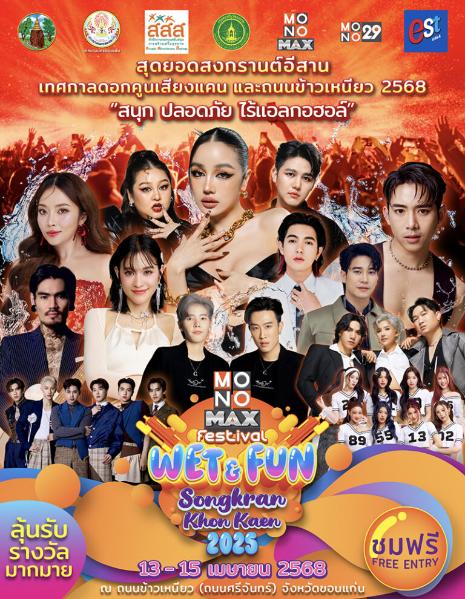 MONOMAX (โมโนแม็กซ์) ร่วมกับ เทศบาลนครขอนแก่นและหน่วยงานพันธมิตร จัดแถลงข่าวงานประเพณีสุดยอดสงกรานต์อีสานเทศกาลดอกคูนเสียงแคนและถนนข้าวเหนียว ประจำปี 2568 ภายใต้แนวคิด “สุขีวิถีไทย รวมใจถนนข้าวเหนียว เที่ยวสนุกสาดถึงแก่น” พร้อมยึดมั่นมาตรการ “สนุก ปลอดภัย ไร้แอลกอฮอล์” เพื่อรักษาไว้ซึ่งรากเหง้าทางวัฒนธรรมอันดีงามของท้องถิ่น การแถลงข่าวครั้งนี้จัดขึ้นเมื่อ วันพฤหัสบดีที่ 20 มีนาคม 2568 ณ ห้องภูพาน โรงแรมขอนแก่น โฮเต็ล โดยมี นายธีระศักดิ์ ฑีฆายุพันธุ์ นายกเทศมนตรีนครขอนแก่น จัดแถลงข่าว “งานประเพณีสุดยอดสงกรานต์อีสาน เทศกาลดอกคูนเสียงแคน และถนนข้าวเหนียว ประจำปี 2568” โดยมีตัวแทนจากหน่วยงานและเอกชนร่วมงานเป็นจำนวนมาก อาทิ นายยุทธพร พิรุณสาร รองผู้ว่าราชการจังหวัดขอนแก่น, นายธีระศักดิ์ ฑีฆายุพันธุ์ นายกเทศมนตรีนครขอนแก่น, ดร.สมยงค์ แก้วสุพรรณ รองประธานสภาวัฒนธรรมแห่งประเทศไทย และประธานสภาวัฒนธรรมจังหวัดขอนแก่น, นายวิษณุ ศรีทะวงศ์ ประธานมูลนิธิเครือข่ายพลังสังคม ในนาม สำนักงานกองทุนสนับสนุนการสร้างเสริมสุขภาพ(สสส.), พันเอกยุทธนา มหาวัน รองผู้บัญชาการมณฑลทหารบกที่ 23 ค่ายศรีพัชรินทร์, พ.ต.อ.พรชัย…