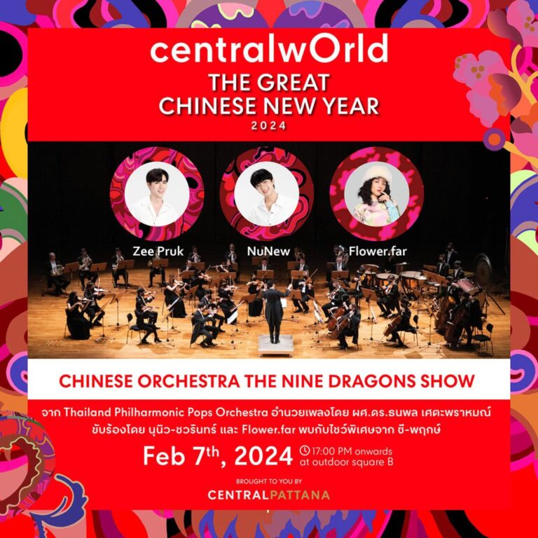 ครั้งแรกสุดเซอร์ไพรส์กับ “นุนิว-ชวรินทร์ เพริศพิริยะวงศ์” King Of White Dragon และ Flower.far หรือ ฟาร์-พิชญานิน หนูศรี ที่จะมาร้องเพลงโชว์พลังเสียงผสานดนตรีจีนในชุด The Wall of Nine Dragons บนเวทีและผ่านจอ The PanOramix ภายในการอำนวยการเพลงโดย ผศ.ดร.ธนพล เศตะพราหมณ์ และออเคสตร้า 40 ชิ้น จาก Thailand Philharmonic Pops Orchestra หนุ่มซี-พฤกษ์ พานิช จะพาแฟนๆ ไปชมความปังรับความเฮงของงาน “centralwOrld The Great Chinese…