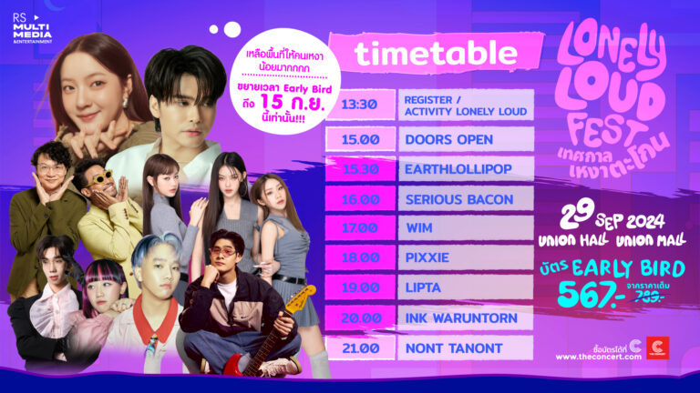 ผ่านพ้นไปแล้ว สำหรับงาน “LONELY LOUD FEST เทศกาลเหงาตะโกน” จัดโดย อาร์เอส มัลติเอ็กซ์ ในเครือ อาร์เอส กรุ๊ป งานเฟสที่รวมพลคนเหงาแต่ไม่เศร้าที่ใหญ่ที่สุด กว่าครึ่งหมื่นคนเหงาเข้าร่วมงาน พร้อมร่วมเก็บโมเมนต์พิเศษที่ประทับใจไม่รู้ลืม กับโซนกิจกรรมคลายเหงา พร้อมรวบทั้ง แอคทิวิตี้ คอมมูนิตี้ ให้คนเหงาทุกคนได้ออกมาปล่อยจอยใช้ชีวิตพบปะ รวมไปถึงเหล่าศิลปินคุณภาพที่พร้อมมามอบความสุขนำโดย นนท์ ธนนท์, อิ้งค์ วรันธร, PIXXIE, LIPTA, SERIOUS BACON และ WIM พร้อมด้วยแขกรับเชิญพิเศษสุดเซอร์ไพรส์ EARTH LOLLIPOP จากค่าย FASH ในเครือ RS Music…