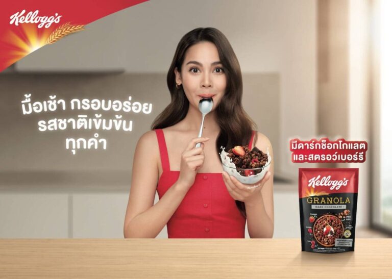 Kellogg’s ผู้นำตลาดซีเรียลชั้นนำจากอเมริกา ต่อยอดความนิยมเมนูมื้อเช้าในคนรักสุขภาพดี เปิดตัวผลิตภัณฑ์ เคลล็อกส์ กราโนล่า รส ‘ดาร์ค ช็อคโกแลต’ (Dark Chocolate) คว้าญาญ่า-อุรัสยา นักแสดงตัวท็อปแนวหน้านั่งแท่นพรีเซ็นเตอร์เคลล็อกส์ กราโนล่า คนไทยคนแรก Kellogg’s ทำเซอร์ไพร์สให้ตลาดซีเรียลมื้อเช้าตั้งแต่ต้นปี ด้วยการเปิดตัวญาญ่า-อุรัสยา สเปอร์บันด์ ในฐานะพรีเซ็นเตอร์เคลล็อกส์ กราโนล่า คนไทยคนแรก เพื่อเป็นตัวแทนของคนรุ่นใหม่ที่มี Energy สดใส รักสุขภาพ และให้ความสำคัญกับมื้อเช้า ที่นอกจากจะต้องมีคุณประโยชน์อุดมไปด้วยใยอาหาร วิตามินและโปรตีนจากธัญพืชหลากชนิดแล้ว ต้องได้รสชาติความหอมกรอบอร่อยของวัตถุดิบระดับพรีเมี่ยมอีกด้วย สำหรับรส ดาร์ค ช็อคโกแลต จากเคลล็อกส์ กราโนล่า เป็นการต่อยอดความสำเร็จจากรส ซุปเปอร์ เบอร์รี่ และรสดีลักซ์ นัท…