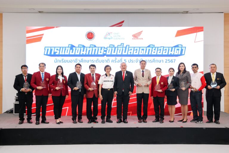 ไทยฮอนด้า ผู้ผลิตและจัดจำหน่ายรถจักรยานยนต์ฮอนด้าในประเทศไทย ร่วมมือกับสำนักงานคณะกรรมการการอาชีวศึกษา (สอศ.) สานต่อภารกิจลดอุบัติเหตุบนท้องถนนในกลุ่มนักเรียน นักศึกษา ผ่านการแข่งขันทักษะขับขี่ปลอดภัยฮอนด้าระดับชาติ ครั้งที่ 5 รอบชิงชนะเลิศ ประจำปีการศึกษา 2567 จัดขึ้น ณ ศูนย์ฝึกขับขี่ปลอดภัยฮอนด้า กรุงเทพฯ (รามคำแหง) ดร.อารักษ์ พรประภา ประธาน บริษัท ไทยฮอนด้า จำกัด กล่าวว่า “การแข่งขันครั้งนี้สะท้อนถึงความมุ่งมั่นของไทยฮอนด้าในการส่งเสริมกิจกรรมด้านการขับขี่ปลอดภัยในสถานศึกษา ช่วยยกระดับคุณภาพของครู นักเรียนและนักศึกษาให้มีการพัฒนาทักษะการขับขี่ที่ถูกต้องและปลอดภัย โดยเป้าหมายที่สำคัญคือการลดสถิติอุบัติเหตุบนท้องถนน พร้อมควบคู่ไปกับการสร้างวัฒนธรรมการขับขี่ปลอดภัยไปพร้อมกัน จึงได้ร่วมมือกับ สอศ. ในการจัดการแข่งขันทักษะขับขี่ปลอดภัยอย่างต่อเนื่องเป็นปีที่ 5 เพื่อร่วมกันปลูกฝังจิตสำนึกและเสริมสร้างทักษะการขับขี่ปลอดภัยให้กับกลุ่มเยาวชนอาชีวะ ซึ่งการแข่งขันครั้งนี้ได้รับความสนใจจากวิทยาลัยในสังกัดอาชีวศึกษาทั่วประเทศกว่า 351 แห่ง มีนักเรียนเข้าร่วมการแข่งขันจำนวน 784 คน ซึ่งถือว่ามีจำนวนที่เพิ่มขึ้นทุกปี…
