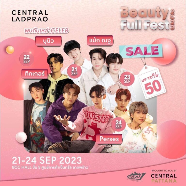 เซ็นทรัลพัฒนา ร่วมกับ บริษัท ยันเรือรบ ออร์แกไนซ์เซอร์ จำกัด จัดงาน Beauty Full Fest 2023 ระหว่างวันที่ 21-24 กันยายน 2566 ณ BCC HALL ณ ชั้น 5 ศูนย์การค้าเซ็นทรัล ลาดพร้าว ซึ่งถือเป็นการรวบรวมคลินิกและโรงพยาบาลศัลยกรรมความงามชื่อดังของประเทศไทย ไว้อย่างครบครันที่สุดเป็นครั้งแรกของประเทศไทยมากกว่า 30 ราย โดยมีวัตถุประสงค์ เพื่อสร้างความน่าเชื่อถือของคลินิกและโรงพยาบาลศัลยกรรม รวมถึงสร้างตัวตนสร้างความเชื่อมั่นให้ลูกค้าของคลินิกและโรงพยาบาลได้พบกับกลุ่มลูกค้าหลักโดยตรง ภายในงานได้รวบรวมสถาบันความงามชื่อดังและจัดโปรโมชั่นพิเศษเพื่อลูกค้าเฉพาะที่นี่ที่เดียวพร้อมพบกับศิลปินดังมากมาย อาทิ , แม้ก-ณฐ, ทิกเกอร์, Perses และอื่น…