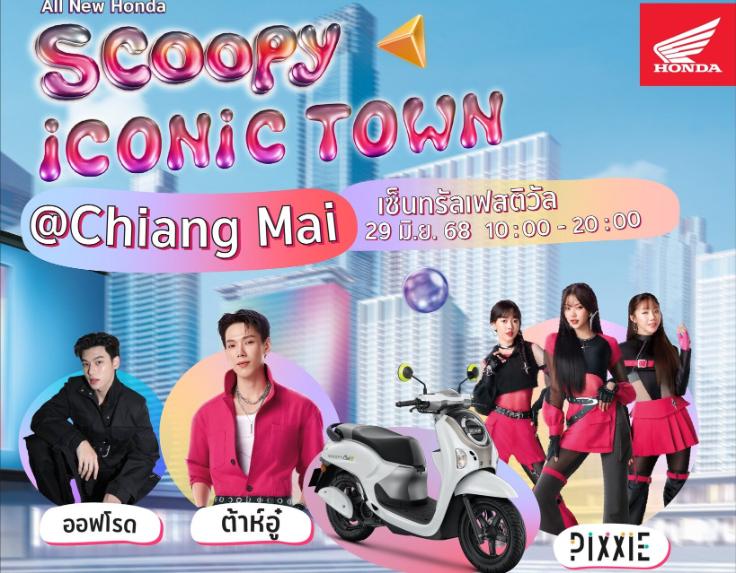 รถจักรยานยนต์ฮอนด้า จัดกิจกรรมสุดไอคอนิกเอาใจชาว Scoopy กับงาน “SCOOPY iCONiC TOWN” ในพื้นที่ภาคเหนือ ณ ลานกิจกรรมหน้าศูนย์การค้าเซ็นทรัลเฟสติวัล จังหวัดเชียงใหม่ เมื่อสุดสัปดาห์ที่ผ่านมา โดยงานนี้ได้รับการตอบรับอย่างดีจากกลุ่มลูกค้าและผู้เข้าร่วมงาน โดยมีไฮไลต์สำคัญคือการขับขี่ร่วมทริปของลูกค้าฮอนด้า 100 คัน และมินิคอนเสิร์ตจากศิลปินฮิตอย่าง “ต้าห์อู๋ และ ออฟโรด”…