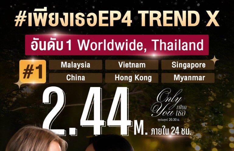 “หลิง – ออม” จูงมือ “เพียงเธอ” ทุบเรตติ้งนิวไฮ แรงเกินต้าน! ครองแชมป์ เทรนด์ไทย-โลก อันดับ 1
