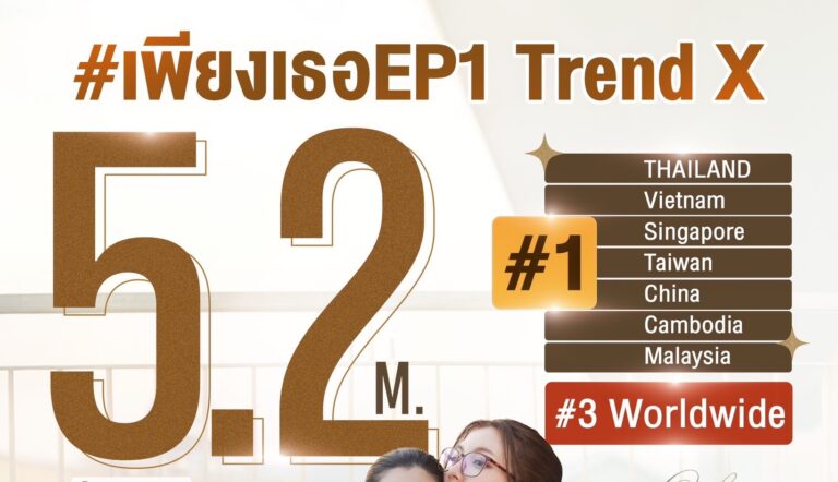 เปิดตัวยิ่งใหญ่สมการรอคอย สำหรับ “เพียงเธอ Only You The Series” ทางช่อง 3 ซีรีส์เรื่องที่สองของ “หลิงหลิง คอง” และ “ออม กรณ์นภัส” ที่สร้างกระแสถล่มทลายตั้งแต่เปิดตัวตอนแรกส่งผลให้แฮชแท็ก #เพียงเธอEP1 ทะยานติดเทรนด์ X อันดับ 1 ประเทศไทย ภายใน 5 นาที ยอดรีโพส 1M ภายในเวลา 3 ชั่วโมง และมียอดทวิตกว่า 5.2 ล้าน ภายใน 24 ชั่วโมง พร้อมติดอันดับ 3 เทรนด์โลก และติดเทรนด์อีก…