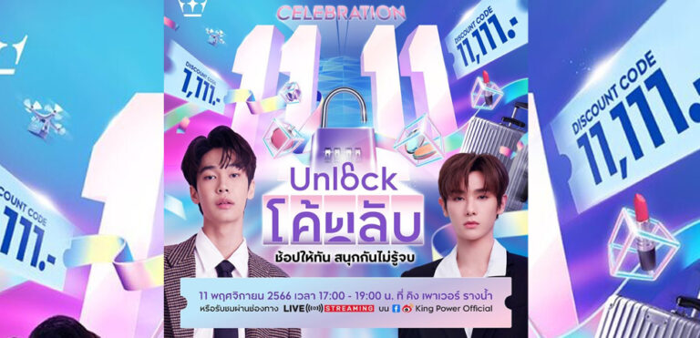 คิง เพาเวอร์ ยกระดับประสบการณ์การช้อปที่เป็นไปได้ จัดแคมเปญ “11.11 CELEBRATION ช้อปให้ทัน สนุกกันไม่รู้จบ” มอบความคุ้มค่าที่สุดในรอบปีลดสูงสุด 11,111 บาท พบกับกิจกรรมเอ็นเตอร์เทนเม้นท์ จาก 2 หนุ่มดิว-จิรวรรตน์ และนาย-กรชิต ที่จะมาปลดล็อกโค้ดส่วนลดสุดพิเศษ ที่ คิง เพาเวอร์ รางน้ำ หรือรับชมผ่านช่องทาง LIVE STREAMING บน FACEBOOK และ WEIBO KING POWER OFFICIAL ในวันที่ 11 พฤศจิกายน 2566 วันเดียวเท่านั้น เพื่อต้อนรับเทศกาลแห่งความสุข 11.11 CELEBRATION ในวันที่…
