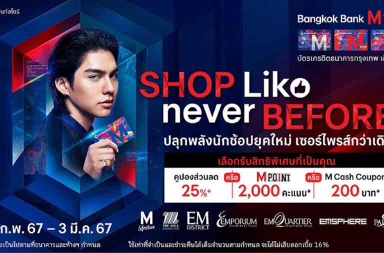 เดอะมอลล์ กรุ๊ป ร่วมกับ ธนาคารกรุงเทพ จัดเอ็กซ์คลูซีฟแคมเปญ “Shop Like Never Before” ปลุกพลังนักช้อปยุคใหม่ เซอร์ไพรส์กว่าเดิมทลายทุกกฎการช้อป เลือกรับสิทธิพิเศษที่เป็นคุณได้ด้วยตัวเอง รับคูปองส่วนลด 25%, M Point 2,000 คะแนน หรือ M Cash Coupon มูลค่า 200 บาท พร้อมพบกิจกรรมสุดพิเศษ 29 FEB WONDERS!! วันที่ 29 กุมภาพันธ์ 67 วันเดียวเท่านั้น ห้างสรรพสินค้ากลุ่มเดอะมอลล์ ร่วมกับ ธนาคารกรุงเทพ จัดเอ็กซ์คลูซีฟแคมเปญ “Shop Like Never Before” ปลุกพลังนักช้อปยุคใหม่ เซอร์ไพรส์กว่าเดิม มอบโปรโมชั่นสุดว้าว 10 วันเต็ม ตั้งแต่วันที่ 23 กุมภาพันธ์ – 3 มีนาคม 2567 ที่ห้างสรรพสินค้าเดอะมอลล์ และเดอะมอลล์ไลฟ์สโตร์ ทุกสาขา (ยกเว้น เดอะมอลล์ รามคำแหง), เอ็มโพเรียม, เอ็มควอเทียร์, เอ็มสเฟียร์ และพารากอน สมาชิกบัตรเครดิต…