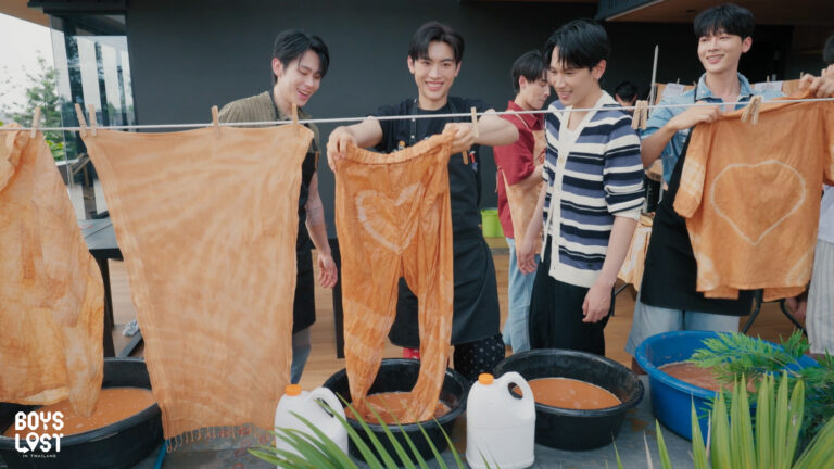 ความสนุกเพิ่มขึ้นทุกตอน! สำหรับรายการเรียลลิตี้ยอดนิยม “Boys Lost in Thailand” EP.5 ในสัปดาห์นี้ แก๊งหนุ่มๆ Boys Lost ทั้ง 10 คนอย่าง ทะเล, ปอร์เช่, อินทัช, เติร์ด, เอฟโฟร์, จวิ้นหลาน, จั๋วเจี๋ย, โดกยุน, จาอุน, และ จุนซู ที่มาจากการรวมตัวของ 3 สัญชาติ ไทย-จีน-เกาหลี จะพาทุกคนไปสนุกกับงานหัตกรรมของไทย “ทำผ้ามัดย้อมจากสีดิน” โดยกลุ่มวิสาหกิจชุมชนท่องเที่ยว GO Park ภาพเขียนสีก่อนยุคประวัติศาสตร์เขาจันทน์งาม ทำเอาหนุ่มๆ ตื่นเต้นตาลุกวาวไปความสวยงามของหัตถกรรมไทย ภารกิจครั้งนี้ทั้ง 10 คนจะต้องจับคู่กันเพื่อสร้างสรรค์ความสวยงามของผ้ามัดย้อมจากสีดินตามสไตล์ที่ครีเอทขึ้นมา ซึ่งความยากง่ายของแต่ละลายนั้นมีความแตกต่างกันไป เกิดเป็นการเรียนรู้ศิลปหัตถกรรมท่ามกลางความสนุกสนานและซุกซนที่เป็นเสน่ห์ของหนุ่มๆ Boys Lost ได้อย่างน่าเอ็นดู และเมื่อได้ผ้ามัดย้อมมาแล้ว หนุ่มๆ ต้องครีเอทลุคส์ให้คู่ของตัวเองสำหรับการเดินแฟชั่นโชว์ หลังจบโชว์ต้องทำการโพสต์ภาพ Finished Looks ลง Instagram ภายในเวลา 15 นาทียอดที่กดไลก์จะถูกเปลี่ยนเป็นเงินรางวัล พร้อมรับจิ๊กซอว์ 2 ชิ้น บททดสอบและความท้าทายในภารกิจครั้งนี้…