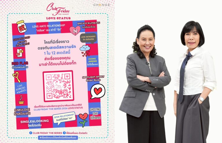 “ความรักเป็นเรื่องของคนทุก GEN” และ “ความสัมพันธ์” คือสิ่งที่เปลี่ยนแปลงไปตามยุคสมัย ปี 2026 นี้ “CLUB FRIDAY THE SERIES” จาก CHANGE2561 ในรูปแบบใหม่ที่สะท้อน “สถานะความรัก” ของคนยุคดิจิทัล ผ่านโปรเจกต์ “CLUB FRIDAY THE SERIES : LOVE STATUS” ที่จะถ่ายทอด 12 เรื่องรัก 12 สถานะ ตลอดทั้ง 12 เดือน โดยมีนักแสดงชั้นนำ 12 คู่ มาร่วมถ่ายทอดหลากมุมมองของหัวใจคนยุคใหม่ ทุกตอนคือการตั้งคำถามถึง “สถานะของเรา” ผ่านความจริงจากหัวใจของใครหลายคน…