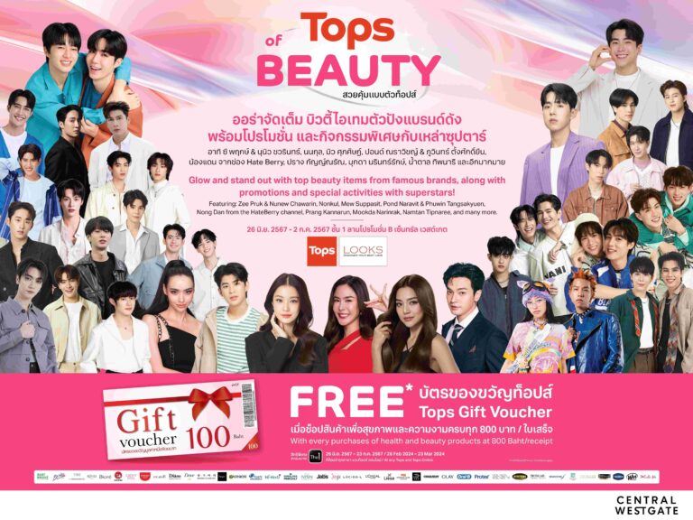 ท็อปส์ ธุรกิจกลุ่มฟู้ด ในเครือเซ็นทรัล รีเทล จัดงานใหญ่แห่งปี เอาใจสายบิวตี้ตัวท็อป “Tops of Beauty” เนรมิตรอาณาจักรความงามที่รวบรวมสินค้าบิวตี้ไอเท็มยอดฮิตจากแบรนด์ชั้นนำและพันธมิตรมากมาย รวมกว่า 1,000 รายการ จาก 60 แบรนด์ เสริมทัพความฟินด้วยเหล่าศิลปินดาราดัง ที่หมุนเวียนกันมาร่วมกิจกรรมส่งมอบความสุขให้ทุกการช้อปสนุกยิ่งขึ้น พร้อมจัดเต็มโปรโมชั่นคืนกำไรให้นักช้อปด้วยดีลเด็ดโดนใจ ลดสูงสุดถึง 50% ตั้งแต่วันนี้ – 2 กรกฎาคม 2567 นี้ ณ ลานโปรโมชัน C ชั้น 1 เซ็นทรัล เวสต์เกต ออร่าจัดเต็ม สวยคุ้มแบบตัวท็อปส์! พบกับไฮไลต์ผลิตภัณฑ์เสริมความงาม-สกินแคร์ที่คัดสรรเฉพาะไอเท็มตัวดังจากทั้งแบรนด์ไทยและแบรนด์ดังนำเข้าจากประเทศญี่ปุ่น และเกาหลี ตอบทุกโจทย์ด้านความงามในราคาสุดคุ้มค่า อาทิ…