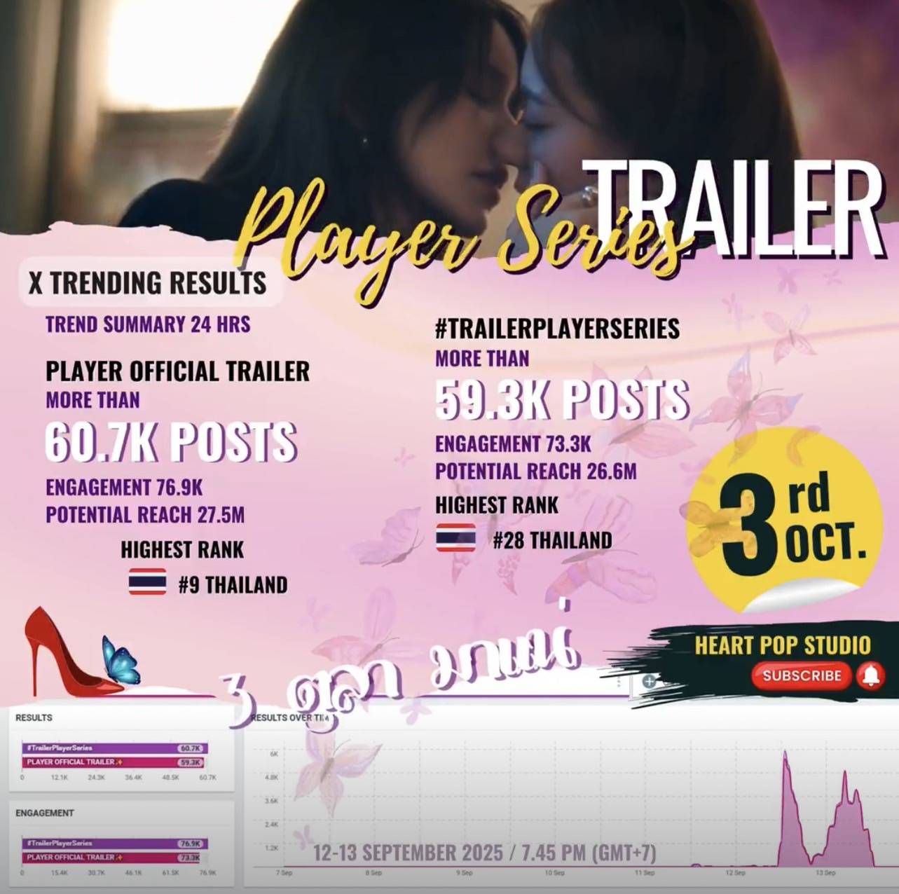 เรียกว่ากระแสพุ่งแรงแบบไม่หยุด สำหรับซีรีส์ “Player ไม่อาจห้ามรัก” เมื่อเสือสองตัวต้องแกล้งเป็นเหยื่อ…ในเกมหัวใจที่ไม่มีใครยอมใคร จากค่าย “HeartPop Studio” ที่แฟนๆ ทั้งชาวไทยและอินเตอร์แฟนตั้งตารอชมซีรีส์กันอย่างล้นหลาม กับความรักสุดวุ่นวายที่เต็มไปด้วยแผนลับ และความรู้สึกที่เกินจะควบคุม ซีรีส์ยูริสุดร้อนแรง ดัดแปลงจากนิยายขายดีของ SIIX ทันทีที่ปล่อย Official Trailer ออกมาอย่างเป็นทางการไม่ทันไร แฟนๆ…