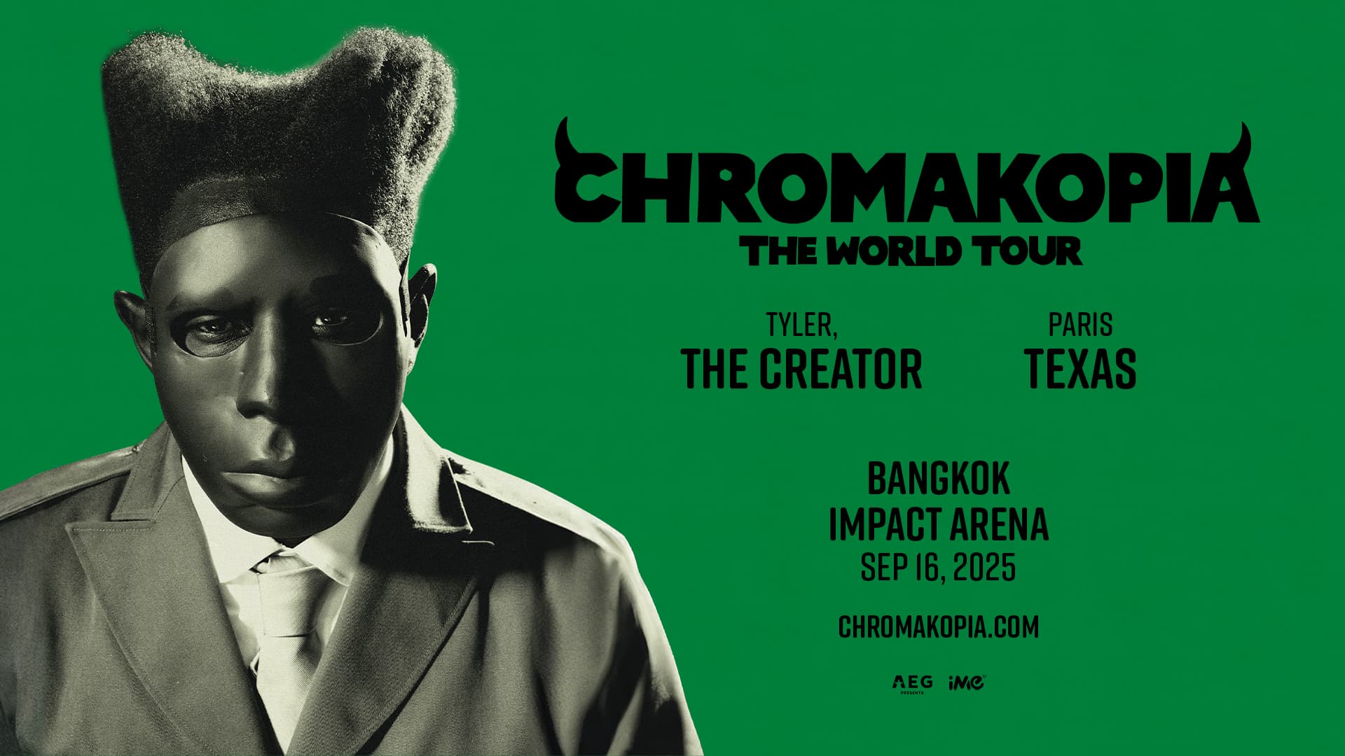 อีกไม่ถึง 1 สัปดาห์! กรุงเทพฯ กำลังจะลุกเป็นไฟไปกับค่ำคืนแห่งเสียงดนตรีสุดเดือดจากศิลปินฮิปฮอประดับโลก Tyler, The Creator ที่พร้อมยกเวิลด์ทัวร์สุดยิ่งใหญ่ CHROMAKOPIA: THE WORLD TOUR มาเสิร์ฟความมันส์ให้แฟนเพลงชาวไทยถึงที่ ในวันที่ 16 กันยายน 2568 เวลา 20.00…