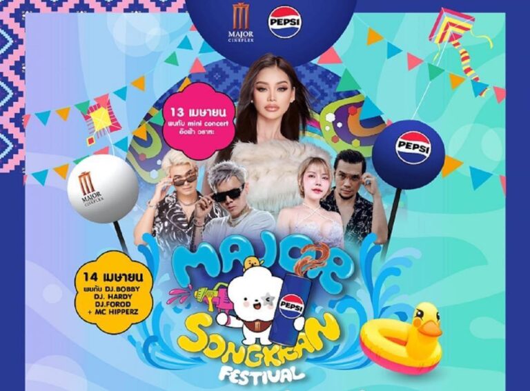 เมเจอร์ ซีนีเพล็กซ์ กรุ้ป ผนึก เป๊ปซี่ เนรมิตพื้นที่เมเจอร์ ซีนีเพล็กซ์ รัชโยธิน แลนด์มาร์คงานสงกรานต์แห่งใหม่ใจกลางรัชโยธิน ต้อนรับปีใหม่ไทยสุดยิ่งใหญ่กับ “Major Songkran Festival”วันที่ 13 – 14 เมษายนนี้ มาสาดความสนุกแบบจัดเต็มต่อเนื่อง ตื่นตาตื่นใจกับกิจกรรมที่จัดมาให้สนุกกันฟรีตลอดทั้งงาน พร้อมเปิดพื้นที่ ลานหิน อเวนิว รัชโยธิน ให้สนุกจัดเต็มแบบฉ่ำ ๆ กับกิจกรรมไฮไลต์ ที่เดอะแก๊งค์จะได้เล่นน้ำสนุกกว่าเดิมกับอุโมงค์น้ำยาวกว่า 20 เมตร ในรูปแบบ SPLASH SUMMER พร้อมแสง สี เสียง แบบจัดเต็ม พร้อมพบกับความสนุกอย่างต่อเนื่องกับฟรีคอนเสิร์ตที่จะมาสร้างความสุขตลอด 2 วันเต็ม 13-14…