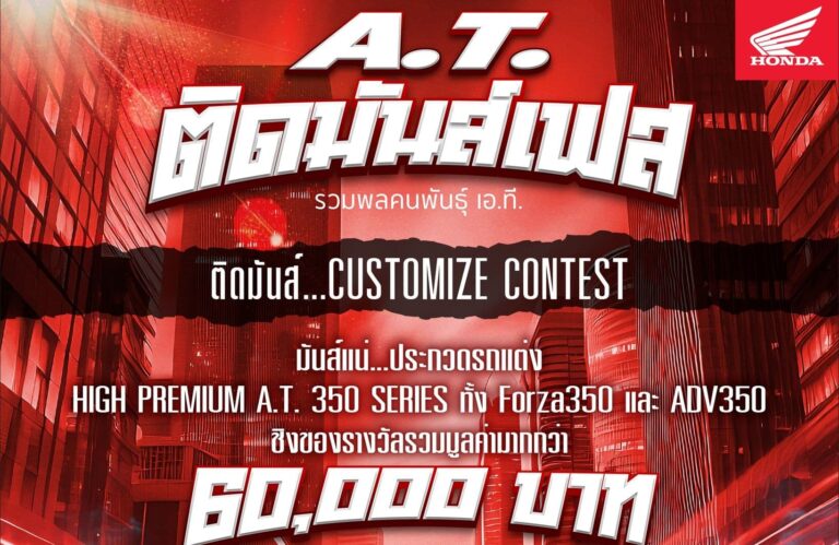 รถจักรยานยนต์ฮอนด้า เตรียมจัดงานมีตติ้งครั้งยิ่งใหญ่สำหรับคนพันธุ์ เอ.ที. กับงาน “A.T. ติดมันส์เฟส” ที่เปิดพื้นที่ให้ชาว เอ.ที. ทุกรุ่น ทุกค่ายทั่วกรุงเทพฯ ได้มารวมตัวพบปะกัน สัมผัสประสบการณ์ความมันส์แบบจัดเต็มกับกิจกรรมภายในงานที่จัดเตรียมให้ชาวเอ.ที. โดยเฉพาะ งานนี้เข้าร่วมงานได้ฟรี! ในวันเสาร์ที่ 19 กรกฎาคม 2568 เวลา 16.00 – 21.00 น. ณ ตลาดนัดเลียบด่วนแดนเนรมิต กรุงเทพฯ ไฮไลต์กิจกรรมภายในงาน สัมผัสความมันส์ทุกรูปแบบที่ไม่ควรพลาด ไม่ว่าจะเป็น ผู้ที่สนใจร่วมกิจกรรม Customize Contest และการแข่งขันเกม Fun Gymkhana Game สามารถติดตามรายละเอียดการสมัครได้เพิ่มเติมที่ทางเฟซบุ๊กแฟนเพจ Honda Motorcycle Thailand ได้เร็ว…