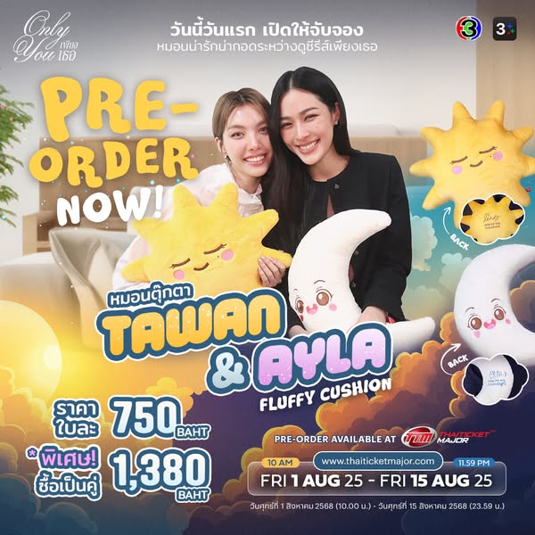 “หลิงหลิง – ออม” เสิร์ฟไอเทมหมอนคู่แทนใจ “Tawan & Ayla Fluffy Cushion” เปิดจองแล้ววันนี้! ที่ Thaiticketmajor