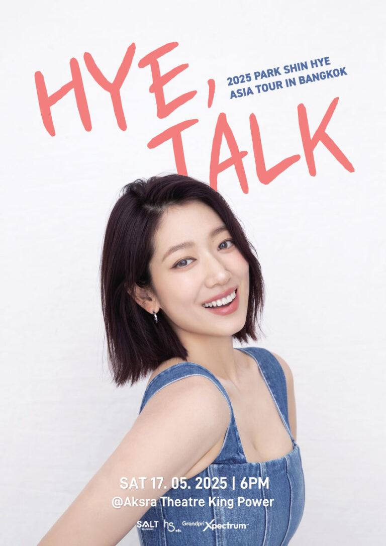 ถึงเวลาแฟนคลับของ “พัคชินฮเย” (Park Shin Hye) หรือ “น้องผัก” สุดที่เลิฟ จะได้หัวใจชุ่มชื่นกันบ้างแล้ว เมื่อนางเอกสาวเจ้าของรอยยิ้มหวานประกาศข่าวดี เตรียมคัมแบคหอบความคิดถึงมาหาแฟนๆ ที่ประเทศไทยเร็วๆ นี้ ในงานแฟนมีตติ้งที่จะเต็มไปด้วยความพิเศษและรายล้อมไปด้วยความอบอุ่น กับงาน 2025 PARK SHIN HYE ASIA TOUR <HYE, TALK> IN BANGKOK ซึ่งจะจัดขึ้นในวันเสาร์ที่ 17 พฤษภาคม 2568 เวลา 18.00 น. ณ โรงละครอักษรา คิง เพาเวอร์ โดยผู้จัด Grandprix Xpectrum พร้อมจัดเต็มความฟิน…