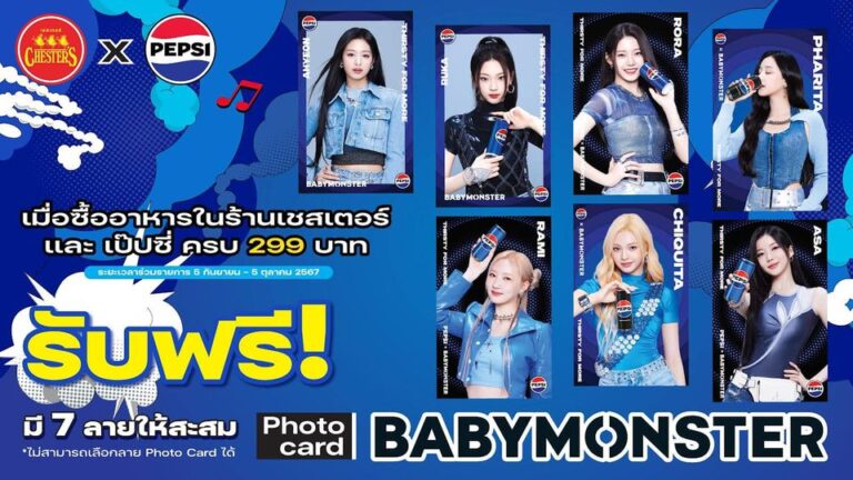 บริษัท ซันโทรี่ เป๊ปซี่โค เบเวอเรจ (ประเทศไทย) จำกัด ผู้ผลิตและจัดจำหน่ายเครื่องดื่มภายใต้แบรนด์สินค้าของซันโทรี่และเป๊ปซี่โคในประเทศไทย จับมือ บริษัท เชสเตอร์ ฟู้ด จำกัด ภายใต้แบรนด์ Chester’s (เชสเตอร์) ธุรกิจร้านอาหารฟาสต์ฟู้ดแบรนด์ไทยมาตรฐานระดับสากลอยู่คู่คนไทยมากว่า 35 ปี เดินหน้าต่อยอดความอร่อยซ่า พร้อมแจกความน่ารัก สดใส เอาใจลูกค้าเชสเตอร์และแฟน ๆ ของ Baby Monster (เบบี้มอนสเตอร์) เกิร์ลกรุ๊ปนิวเจนแห่งวงการ K-POP ซึ่งเป็นพรีเซนเตอร์น้องใหม่ประจำภูมิภาคเอเชียแปซิฟิกของเครื่องดื่มเป๊ปซี่และเป๊ปซี่ไม่มีน้ำตาล ด้วยการเปิดตัวแคมเปญพิเศษ รับฟรี Photo Card Baby Monster จำนวน 1 ใบ (มูลค่า…