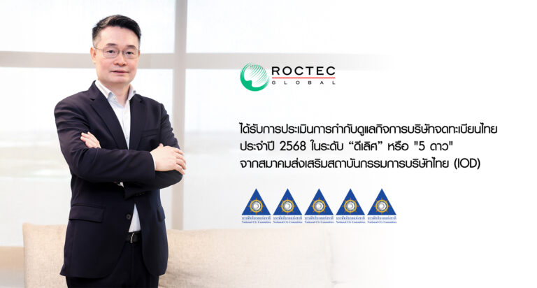 บริษัท ร็อคเทค โกลบอล จำกัด (มหาชน) หรือ ROCTEC ได้รับการประเมินผลการกำกับดูแลกิจการของบริษัทจดทะเบียนไทย (Corporate Governance Report of Thai Listed Companies: CGR) ประจำปี 2568 ในระดับ “ดีเลิศ” หรือ “5 ดาว” จากสมาคมส่งเสริมสถาบันกรรมการบริษัทไทย (IOD) โดยมีสำนักงานคณะกรรมการกำกับหลักทรัพย์และตลาดหลักทรัพย์ (ก.ล.ต.) ให้การสนับสนุน ความสำเร็จครั้งนี้นับเป็นก้าวกระโดดครั้งสำคัญ จากผลการประเมินระดับ “3 ดาว” ในปีก่อนหน้า สู่ระดับสูงสุด สะท้อนถึงความมุ่งมั่นของ ROCTEC ในการดำเนินธุรกิจด้วยความโปร่งใสมีความรับผิดชอบต่อผู้มีส่วนได้ส่วนเสียทุกภาคส่วนและยึดมั่นในหลักธรรมาภิบาลตามมาตรฐานสากลอย่างแท้จริง