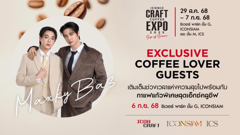 หลังจากเสิร์ฟเคมีสุดฟินให้จิ้นไม่หยุด ครั้งนี้สองหนุ่มสุดฮอต “แม็กกี้-รชต พิเชฐโชติ” และ “บาส-หัสณัฐ พินิวัตร์” ขอเสิร์ฟกาแฟมัดใจแฟน ๆ กันบ้างกับ “รักแรกจิบ” เมนูพิเศษในงาน “ICONIC CRAFT COFFEE EXPO 2025” ที่มาพร้อมของขวัญสุดคิ้วท์และสิทธิพิเศษ ลุ้นเป็นผู้โชคดีเข้าร่วมกิจกรรมใกล้ชิดกับสองหนุ่มใน “Exclusive Coffee Lover with MaxkyBas” ซึ่งจะจัดขึ้นในวันที่ 6 กันยายน 2568 นี้ที่ไอคอนสยาม ความเก๋ของเมนู “รักแรกจิบ” คือการนำแรงบันดาลใจจาก “โจฮัน-นอร์ธ” ในซีรีส์ “Fourever You เพราะรักนำทาง” มาสร้างสรรค์เป็นเมนูกาแฟสุดเอ็กซ์คลูซีฟ ที่หวานละมุน แฝงด้วยความเปรี้ยวนิด…