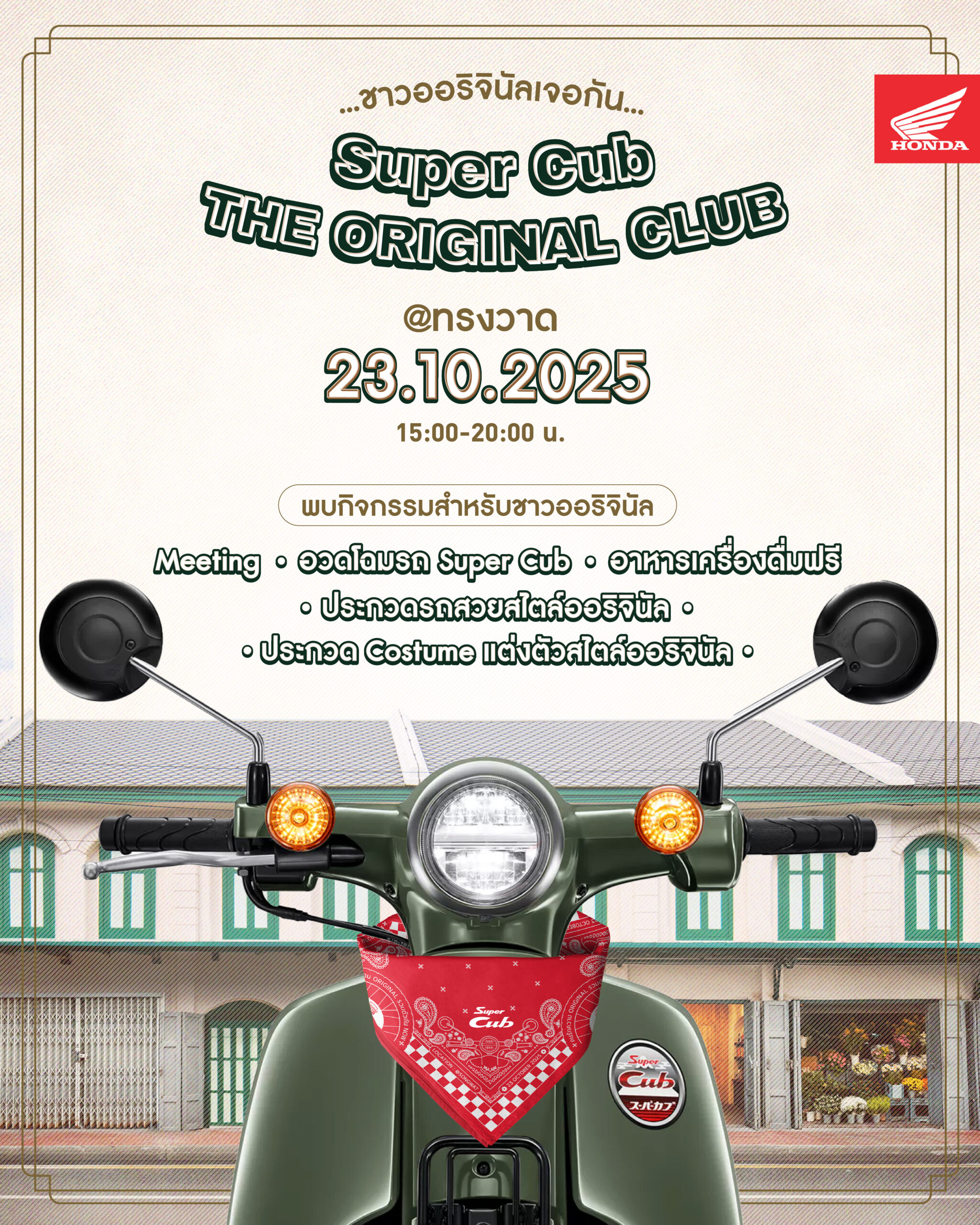 ไทยฮอนด้า ชวนสัมผัสความออริจินัลในงาน “Super Cub THE ORIGINAL CLUB MEETING”รวมพลคนรัก Super Cub สุดคลาสสิก ณ ทรงวาด 23 ตุลาคมนี้