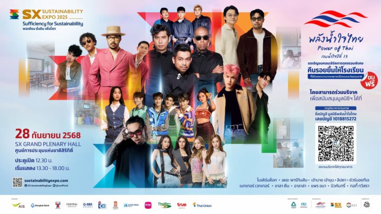 มูลนิธิพลังน้ำใจไทย เตรียมจัดขึ้นอย่างยิ่งใหญ่อีกครั้งกับ “พลังน้ำใจไทย Power of Thai รวมน้ำใจปีที่ 13” ในวันอาทิตย์ที่ 28 กันยายน 2568 เวลา 13.30 – 18.00 น. ในงาน Sustainability Expo ณ SX Grand Plenary Hall ชั้น G ศูนย์การประชุมแห่งชาติสิริกิติ์ เพื่อระดมทุนฟื้นฟูโรงเรียนต่าง ๆ และคืนรอยยิ้มให้โรงเรียนที่ได้รับผลกระทบจากเหตุการณ์ไม่สงบ และภัยธรรมชาติให้กลับมาทำการเรียนการสอนได้ตามปกติ โดยได้จัดขึ้นครั้งแรก เมื่อเดือนตุลาคมปี 2567 ที่ผ่านมา และได้รับเสียงตอบรับจากหน่วยงาน และประชาชนทั่วไปเป็นอย่างดียิ่งที่ร่วมบริจาคสมทบทุนเป็นจำนวนมาก เพื่อมอบให้แก่มูลนิธิพลังน้ำใจไทยได้นำไปมอบให้กับโรงเรียนจำนวน 11…