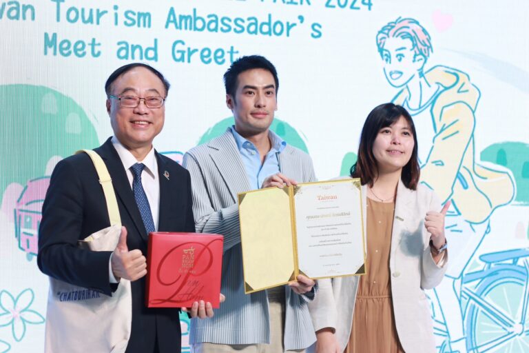 27 มกราคม 2567 ที่บูธ Taiwan tourism ศูนย์ประชุมแห่งชาติสิริกิติ์ คุณ โจว หย่งฮุย อธิบดีทบวงการท่องเที่ยวไต้หวัน คุณซินดี้ เฉิน ผู้อำนวยการการท่องเที่ยวไต้หวัน ประจำกรุงเทพฯ คุณจาง จวิ้น ฝู ผู้อำนวยการใหญ่สำนักงานเศรษฐกิจและวัฒนธรรมไทเป ประจำประเทศไทย ร่วมกิจกรรม “Taiwan Pavilion” ในงาน “เที่ยวทั่วไทย ไปทั่วโลก” โดยมี บอย-ปกรณ์ ฉัตรบริรักษ์ พระเอกหนุ่มอารมณ์ดี แบรนด์แอมบาสเดอร์คนแรกของการท่องเที่ยวไต้หวันประจำประเทศไทย และ “อู๋ เป่าชุน” (Wu Baochun) แชมป์ขนมปังชื่อดังระดับโลก ร่วมโปรโมทงานท่องเที่ยวไต้หวันในครั้งนี้กล่าว เชิญชวนคนไทยไปเที่ยวประเทศไต้หวัน ที่ในเร็วๆนี้จะมี…